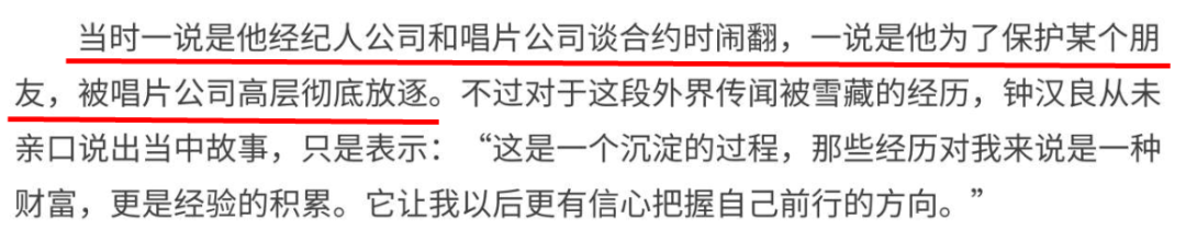 有说是因为钟汉良帮朋友说话,和唱片公司高层闹翻了,也有说是两方的经纪合约没谈拢~