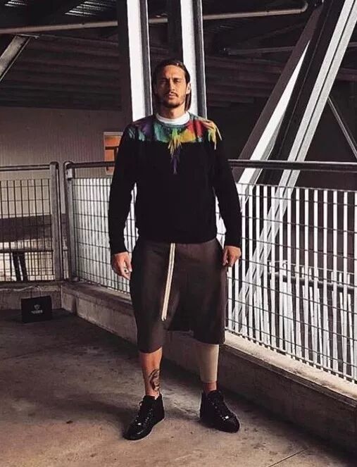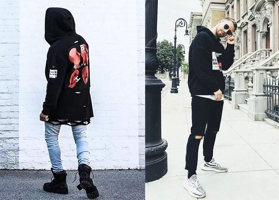 设计师John Elliott的卫衣不需要任何图案,用丰富的单色取胜,卡其色、蓝色、裸色、黑色......特别适合百搭一条牛仔裤,衬托好衣品。侧面开叉设计露出长款T恤,是都市的直男标配。