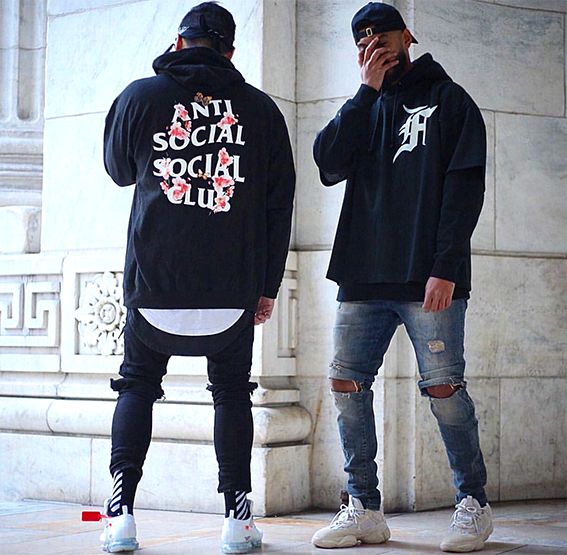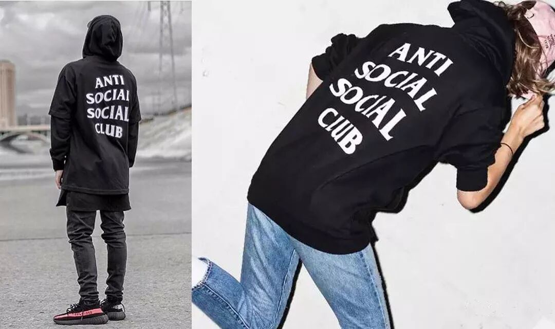 Anti Social Social Club 主理人是美籍韩裔Neek Lurk,大胆色彩和生动文字的CP,它毫不费力的在很短时间里成为了青年们热捧的街头品牌(maybe是亲民的价格更接地气儿)。如果你想买一件潮牌卫衣,英文字母logo或者slogan最常见。ASSC经典款式就是印有“Anti Social Social Club”品牌字母卫衣。