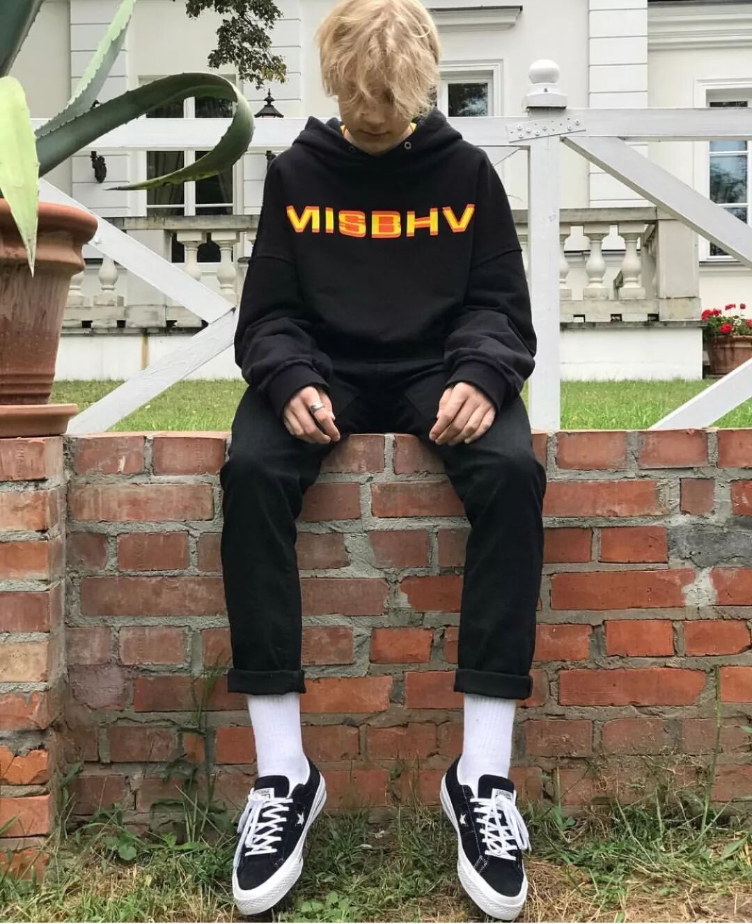 波兰潮牌MISBHV的主理人Natalie Maczek 从小深受摇滚、亚文化和叛逆思想的启发,有很多不对称印花出现在黑色卫衣的胸前和背后。就像拼接大图案一样个性鲜明。
