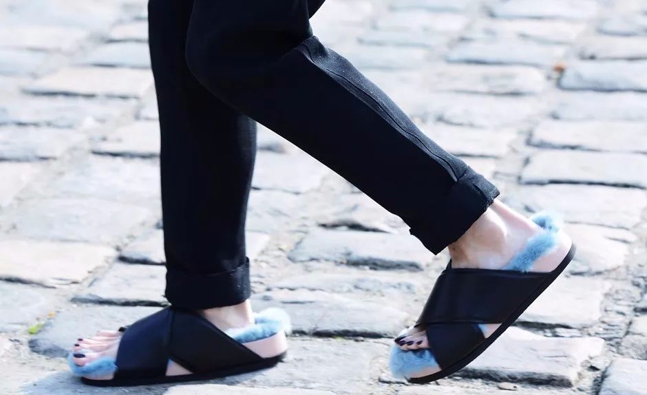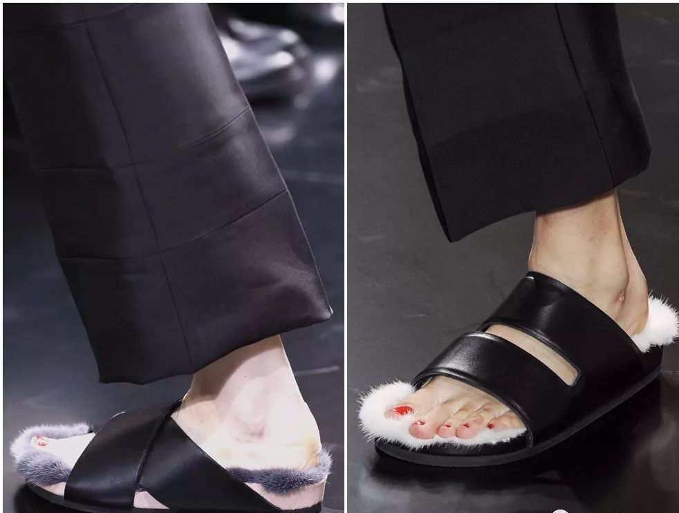 其实早在2013春夏系列里,Celine就在拖鞋里面加了一层毛毛。
