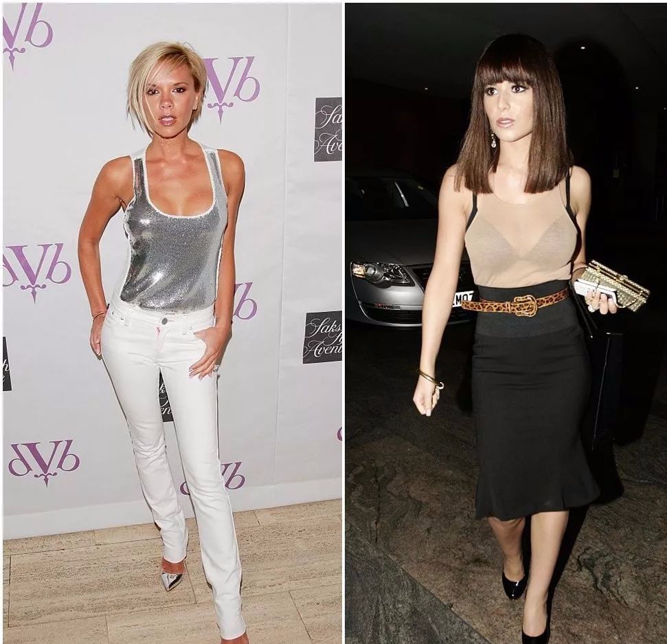 当年紧身裙 + 高跟鞋的贝嫂,到现在高领毛衣 + 小白鞋,也被认为是想“成为下一个菲比”。