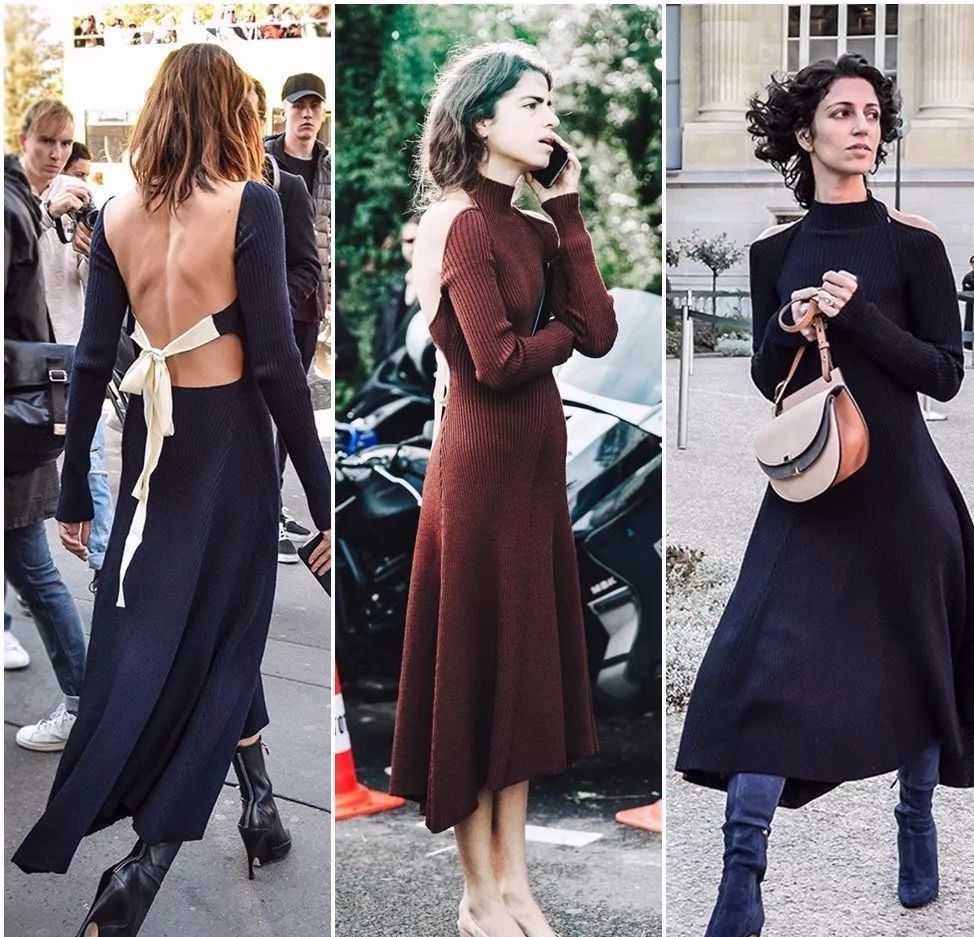下图这条露背连衣裙则是“时装周爆款”,每个人都在穿。