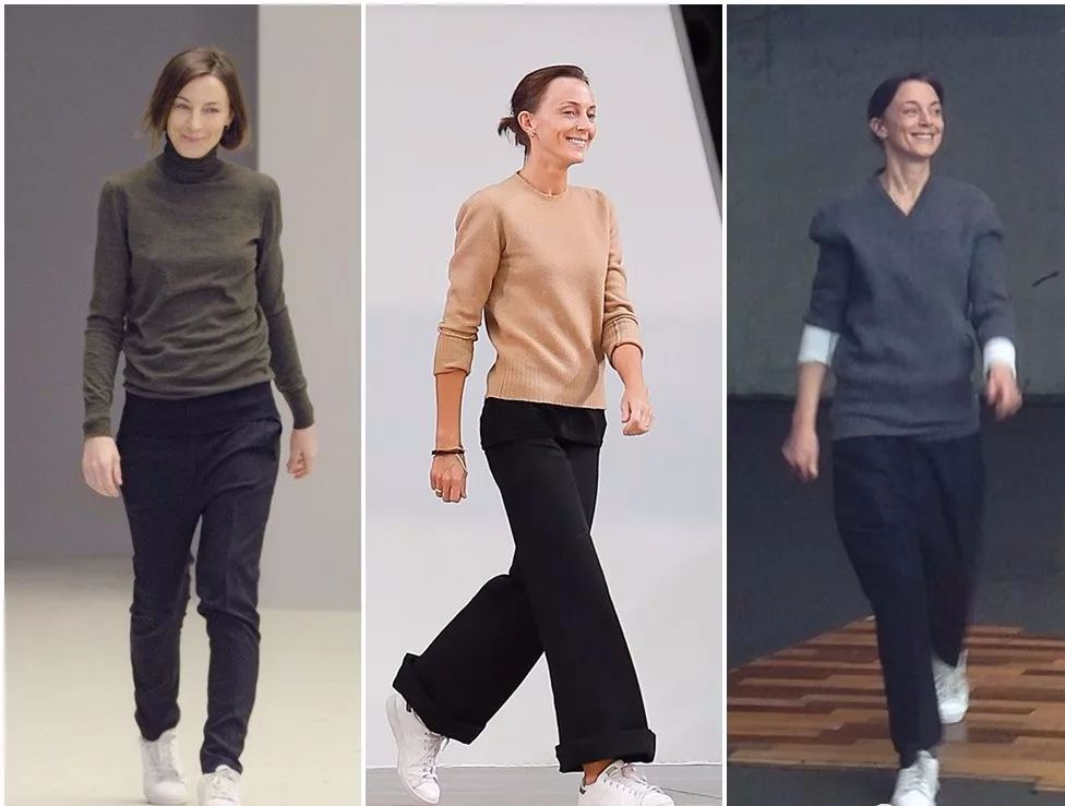 比如,在全民都在穿紧身裤的时候,菲比设计了大量阔腿裤。