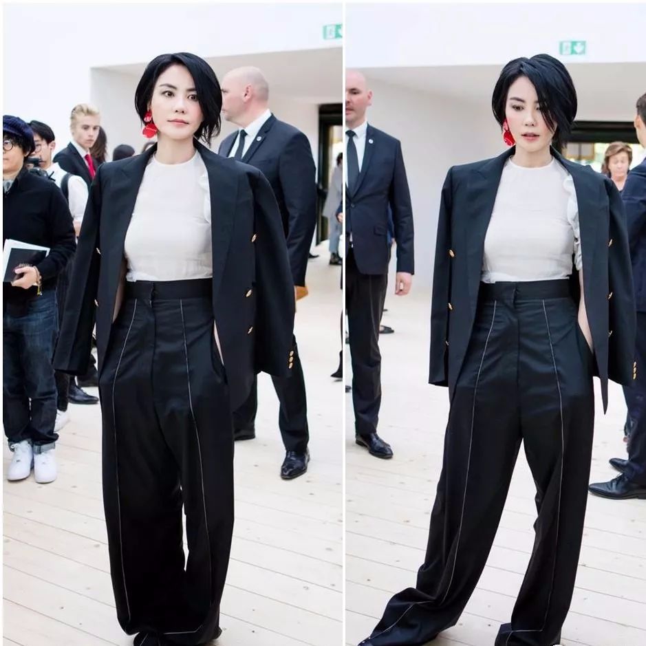 最喜欢她去年看秀的造型,剪了短发,戴着夸张的红色耳环。