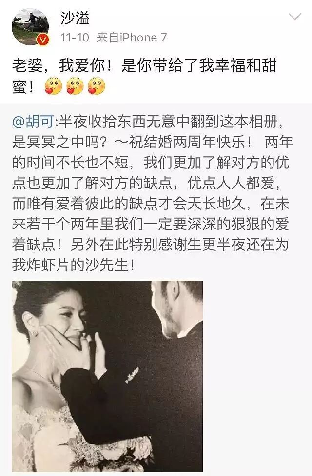 嫁给沙溢后,胡可开始大幅减低工作量,安心照顾这个家庭。以前她的微博相册里都是美食和美景,但现在的更多的是一家人的甜蜜温馨。