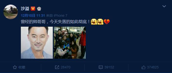 前两天,沙溢发了条微博,感慨终于有人发掘到自己的颜值。