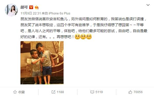 所以在胡可的微博里,我们总能看到安吉暖暖的笑脸。