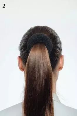 STEP2:将丸子头美发器套在马尾辫的发根处。