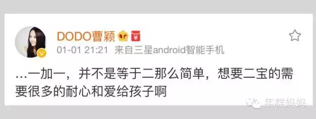 很多人追问曹颖是否要二胎,经历过此次亲子节目,曹颖特别想告诉大家:生两个孩子真的没想象中容易,生之前一定要深思熟虑,因为生了必须对孩子负责任。