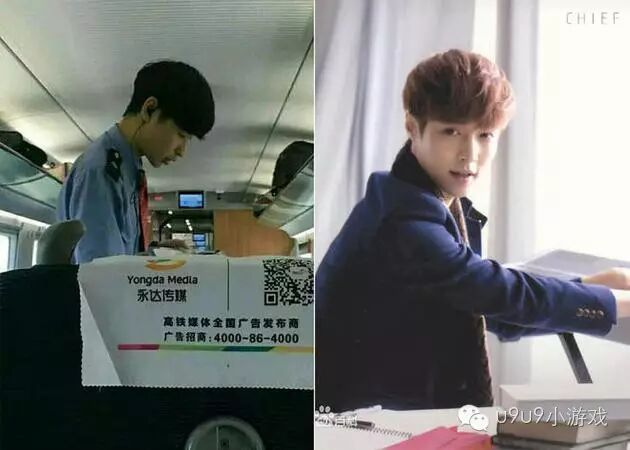 坐高铁也能遇欧巴 EXO三偶像撞脸空乘小哥