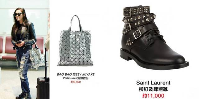 三宅一生这款包已经卖爆了。圣罗兰这双鞋子也非常迎合天爱同学的口味,这个帅必须给一百分。