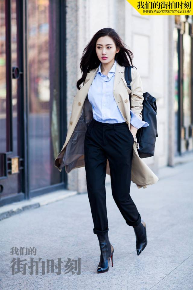 驼色风衣:Jason Wu X Fila,蓝色衬衫:Allen Xie,西装长裤:Ports 1961,