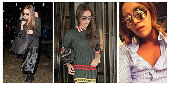 维多利亚·贝克汉姆“熊猫眼”飞行员墨镜是大咖们的宠儿。贝嫂、王菲、刘嘉玲、张根硕等多人都爱。