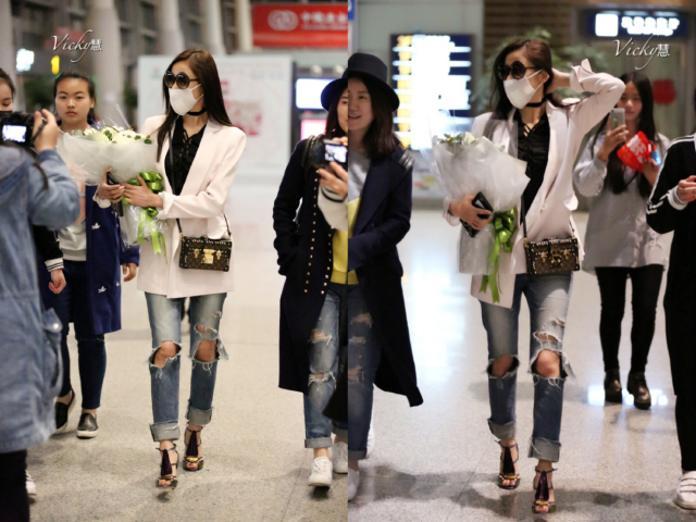 机场LOOK的标配少不了三宝:帽子、墨镜、口罩。可素 不管你再低调捂得再好,也逃不过粉丝宝宝们爱的追踪眼,张天爱每次接送机的场面堪比一场小型演唱会,水泄不通的全是迷弟迷妹↓
