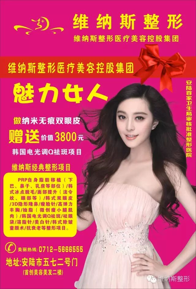 维纳斯经典整形项目:PRP自身脂肪移植(下巴、鼻子、乳房等部位)、韩式冰点脱毛、面包提升(法令纹、眼部等)、韩式双眼皮、3D隐形隆鼻、瘦脸针、高弹力丰胸、抽脂(微创瘦小腿肌肉)、韩国电光调Q祛斑、祛眼袋、溶脂针、美白针、韩式除皱童颜术、抗衰老等整形项目