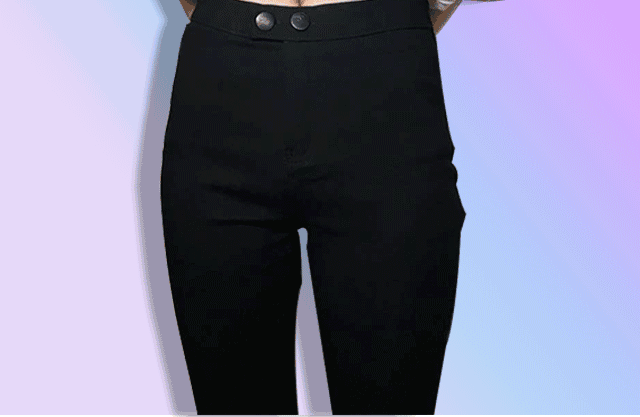 腰围正常的潮妞们可以试试不解开扣子和拉链,直接一提,就能穿上裤子,完全避免了因为最近吃胖穿不上裤子的尴尬!