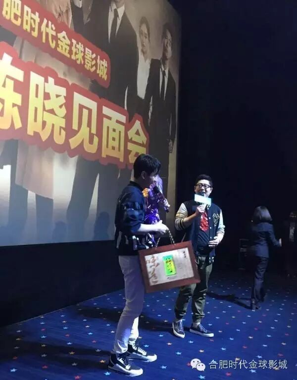 小编代表时代金球影城全体小伙伴给陈晓献上大麦和“合肥特产”(对!没错,那个肥硕的背影就是小编Linlin-姐姐)