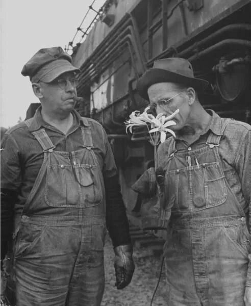 但是介于当时的设计,工装的设计非常普通。只能靠着工人本身的气质展现出一种随性、不羁的感觉。