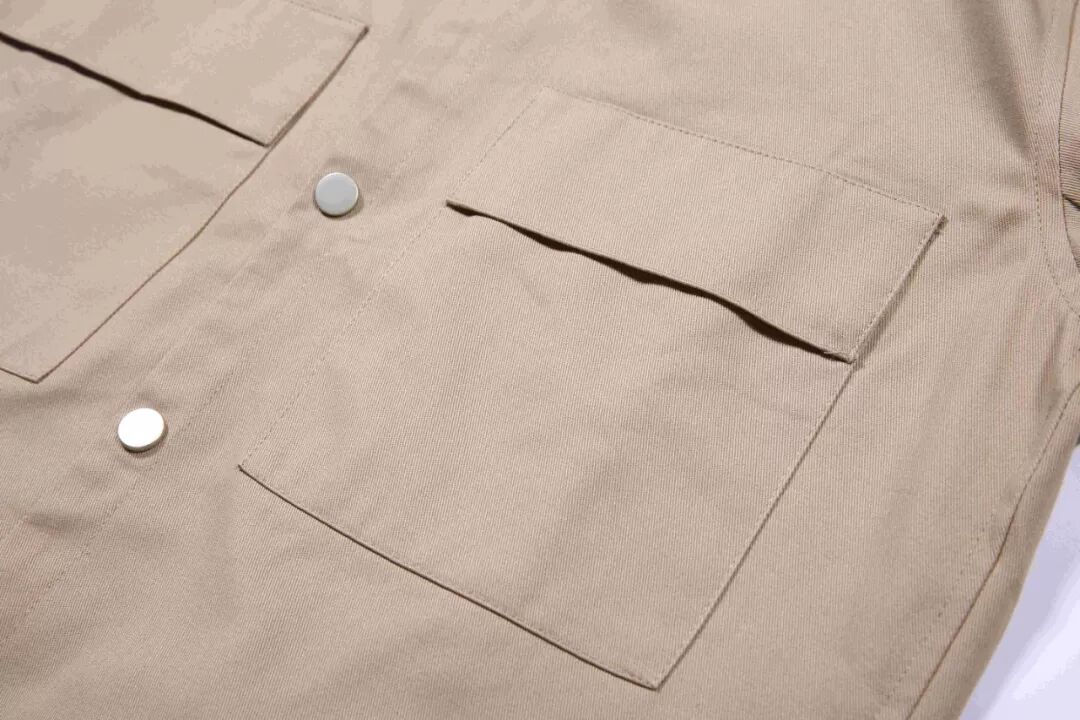 上半身的口袋设计也是完美还原工装的实用性。现代生活出门不再需要带着各种工具,但是钱包、钥匙、工牌、公交卡等小工具都能随手放进口袋中,让你可以扔掉累赘的双肩包。