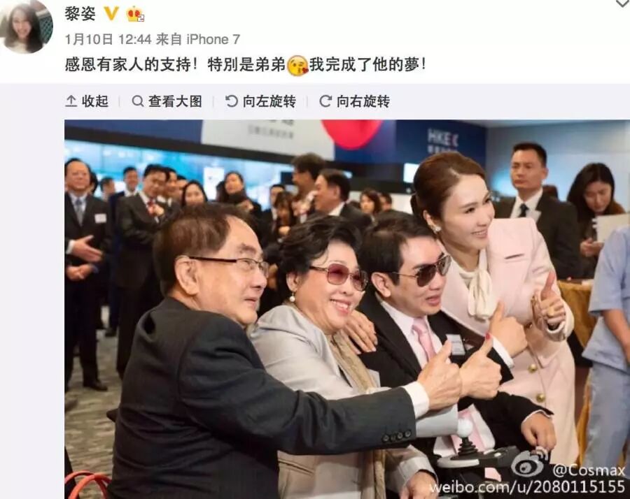 虽然嫁给香港富商,但黎姿又很少提及老公,反而更多提到的是自己的美容生意。