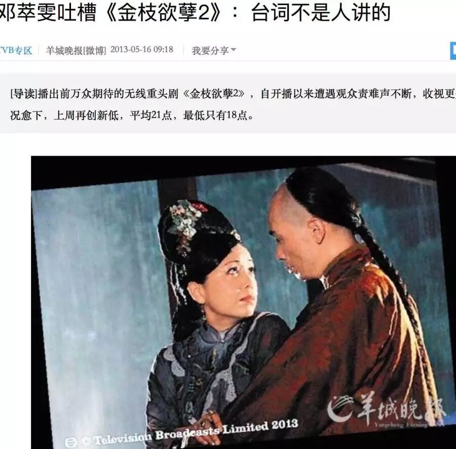 虽然地位高,但在《金枝欲孽》后,张可颐在TVB的作品几乎没有一部可以算得上是代表作。张可颐的演艺事业也在《金枝欲孽》后也开始走下坡路。
