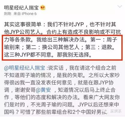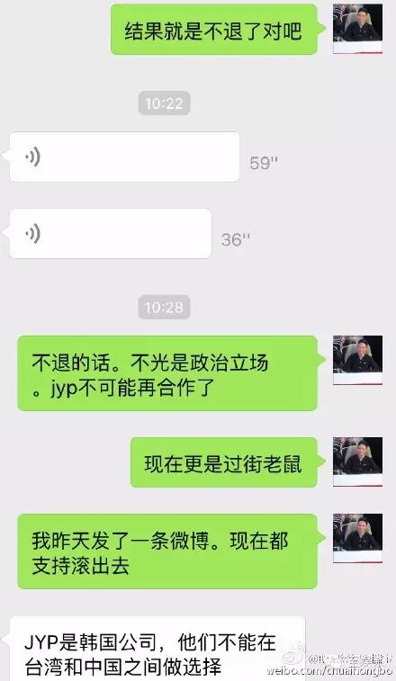 倒是当初负责帮安徽卫视接洽JYP艺人活动的经纪人在微博上爆出一段对话,彻底暴露了JYP零回应的原因。