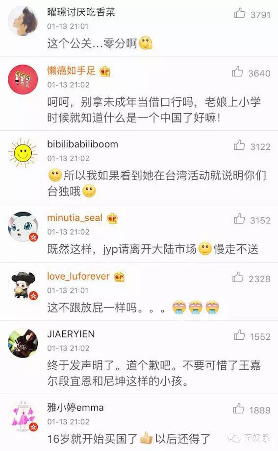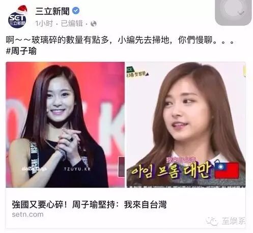 爆料一出,无疑是给网民们本就敏感的神经上重重一击,到如今不仅是周子瑜,整个JYP都被冠上了『台独』公司的称号。