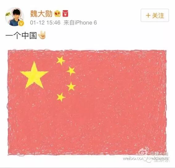 其实这次事件爆出之后,JYP签约的中国艺人魏大勋反应最快,早早就在微博上晒出了五星红旗。