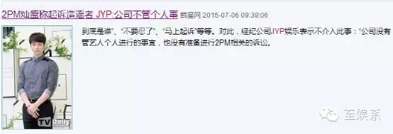 而到了2pm成员黄灿盛因受谣言困扰在ins上回击网友,JYP公司则淡淡地说了句,这是艺人的私事,我们不管。