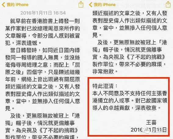而王喜也忙不迭发出一篇声明,表明立场。