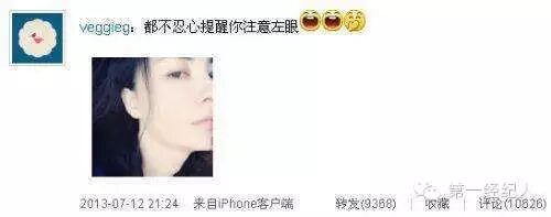 但节目播出后,人们却发现,王菲发了一条“都不忍心提醒你注意左眼”的微博↓