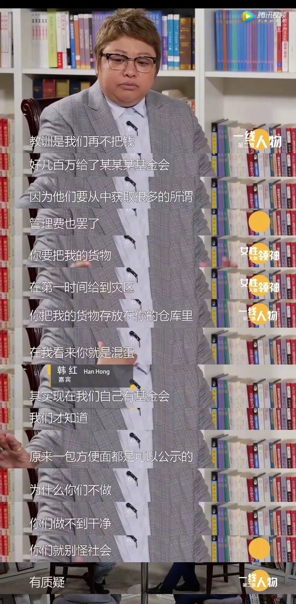 韩红说,她做公益这么年,别的没有,就知道有一条是实实在在的教训,那就是:“不要把钱给XXX基金会,他们不仅收管理费,还把我们的货物堆在仓库里。”