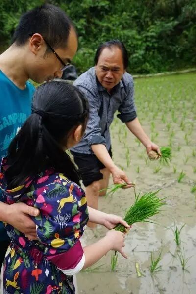 在插秧过程中,小朋友面对泥泞的田野,湿滑的道路,有了真实天然的反应。有的感觉步入一个奇异的世界,兴奋地跃跃欲试;有的害怕、抵触,吵吵嚷嚷地闹着回家。父母们在山谷田野里与孩子发生着各种互动,有合作、有甜蜜,有争执,好一个精彩的真人秀现场,把自然亲子教育的实况和魅力真切地展现出来。