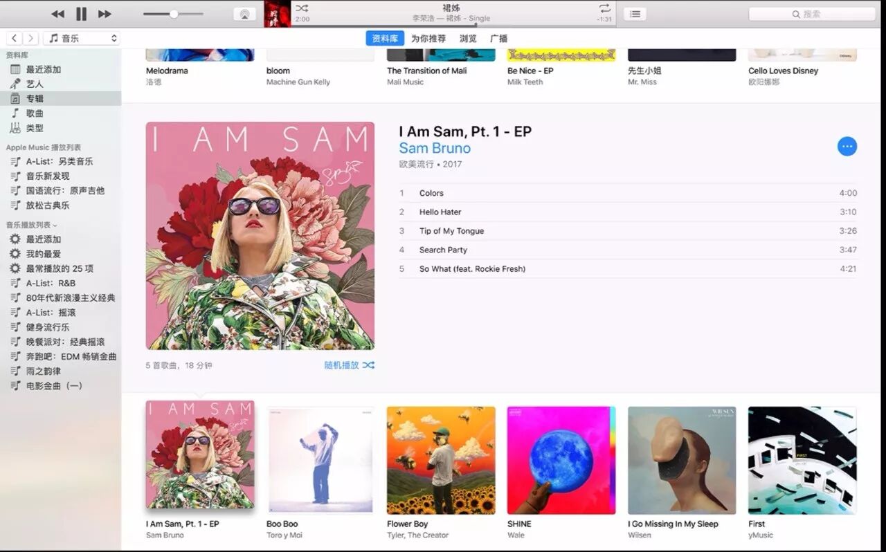 大家在“浏览”菜单中就可以寻找自己喜欢的各种音乐类型。按照歌手、乐队,最为简单,输入检索就可以。比如黄老板(Ed Sheeran )的÷ (Deluxe)。但是由于当下音乐更新很快,日新月异,如果想“与时俱进”提高“听值”,我个人认为决定权交给苹果就好。所以首先一个重要的窍门就是:根据自己想要的场景和风格,来寻找合适的歌曲种类,而不是自己知道的歌手或者歌曲。