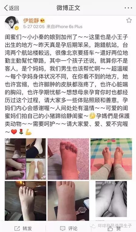 怀孕之后也是种种艰辛,各种各样的孕期反应,腿也出现肿胀,但是还是坚持下来,特别欣赏这句话:“想想也许你的母亲孕育你时也会经历这个过程,请大家多一些体贴照顾和善意”,