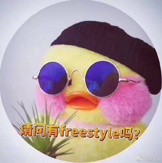 这个梗现在被玩得飞起,赵丽颖的一条微博里配了玻尿酸鸭的Freestyle表情包: