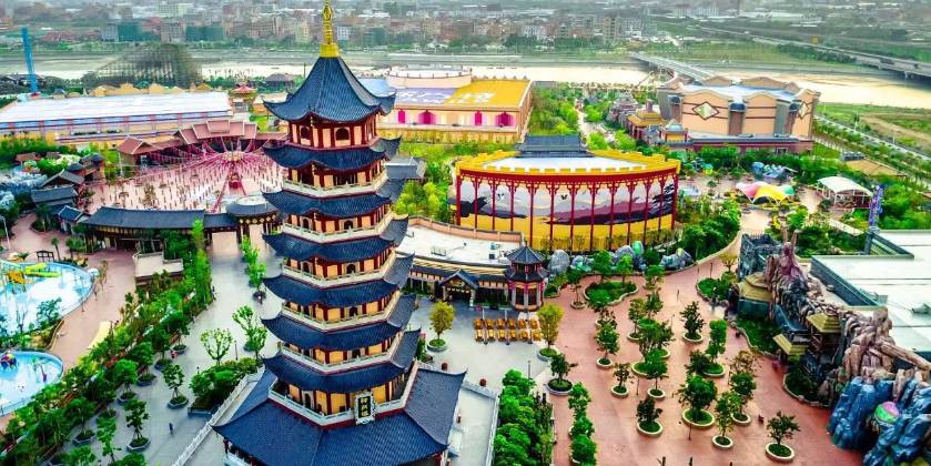 同样刺激的还有方特《神州塔》,在这栋古色古香的建筑里,竟然藏着一台52米的跳楼机!