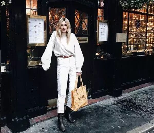 无论是紧身的裤子还是阔腿裤,搭配白毛衣,休闲中带着时髦感。▼