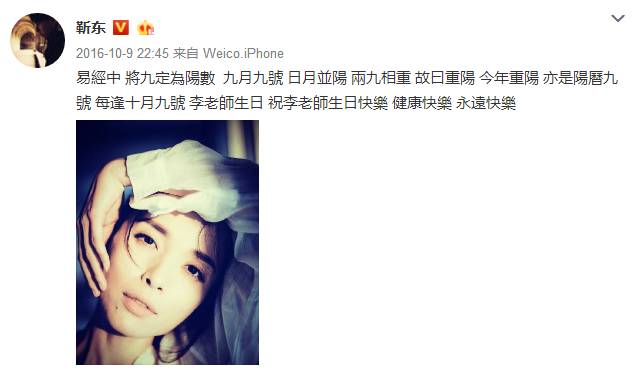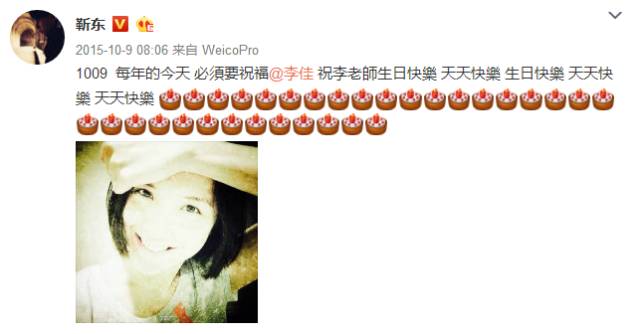 私下里每年1009,靳东都会祝老婆生日快乐,15年往后为了满足广大网友八卦的心,也偶尔会在微博秀下恩爱