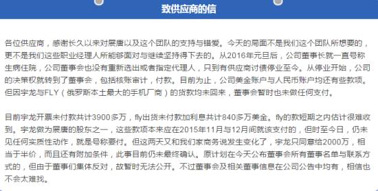 展唐科技致供应商的信 听起来好有道理,但总有种包工头回复讨薪员工的感觉。总结下来就是: 不是我不还你钱,而是因为别人欠我的钱没还,我拿什么还?