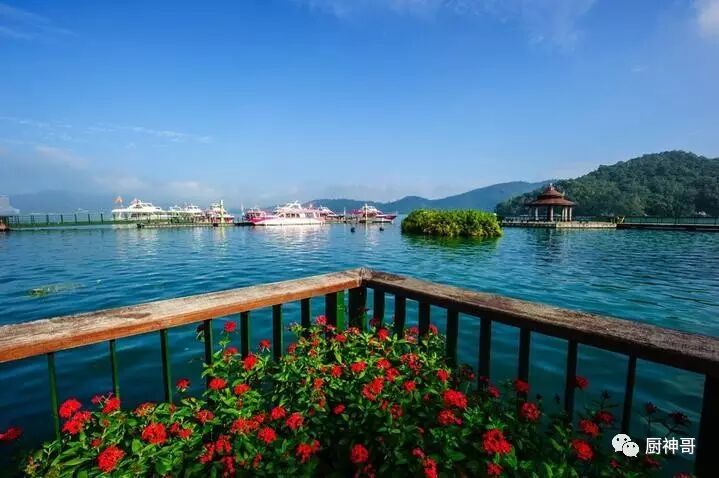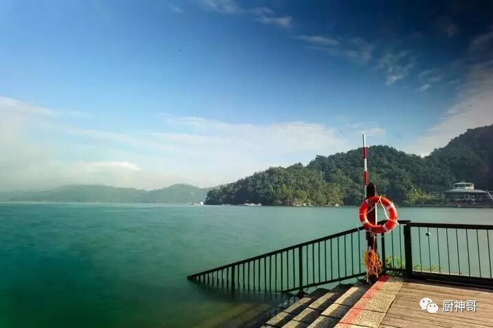 太阳渐渐升高,晨雾终于三散去,一切都清晰地展现在眼前。日月潭应该是台湾最有名的湖泊了吧,湖周长有37公里,最深处达27米,以湖中拉鲁岛为界,北半湖为日潭,南半湖为月潭,状如太阳还是月亮其实看得并不是太明显,但这里清新的空气和适宜的温度确实令人流连忘返的——日月潭夏天平均气温不高于22℃,冬天不低于15℃,夏无酷暑,冬无严寒,因为高耸的中央山脉的庇护,连台湾最为头疼的台风也少有“光顾”,确实一片风水宝地。