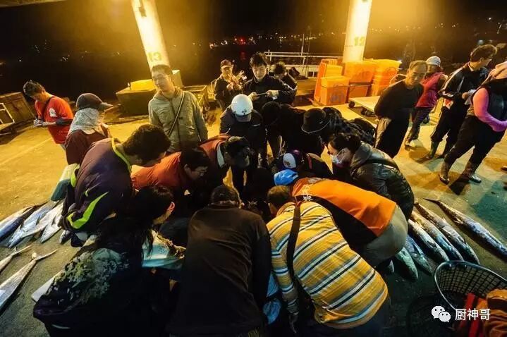 今天的鱼获并不太多,但冬季却是马鲛鱼(当地叫“魚土 魠 “ tǔ tuō)最为肥美的时候,当地人用来煎着吃,或者用来做鱼羹,非常美味。当天最大的一条(大约20多公斤)能卖到3万多新台币,也就是近7000人民币。