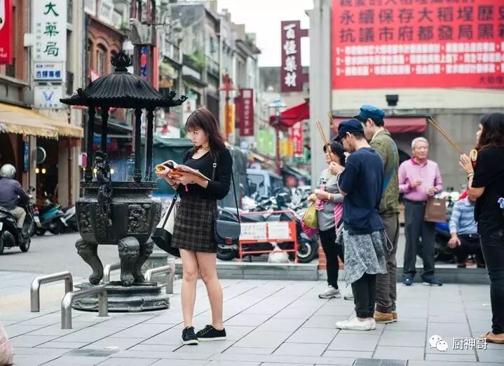 在迪化街上鼎鼎有名的“霞海城隍庙”,我们还见到了不少来自日本的软妹子在略带羞涩地求签——日本游客大概是全世界最教科书式的旅行者,他们总是看着同一本旅行指南,去同样的地方,而这座城隍庙虽然规模不大,但却因求姻缘特别灵验而成为了旅行指南上的首选,只是我不禁感叹,漂亮的本妹难道也找不到男朋友吗?其实和这座城隍庙有关的,是一段心酸的历史,19世纪初来自福建同安的移民从大陆请来了城隍并安置在离大稻埕不远的艋钾,而后他们在与来自晋江、惠安、南安为主的顶郊移民的对艋钾码头的争斗中落败,最后不得不退至大稻埕,而城隍庙也随之迁来。