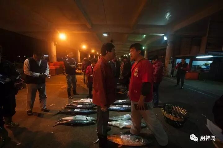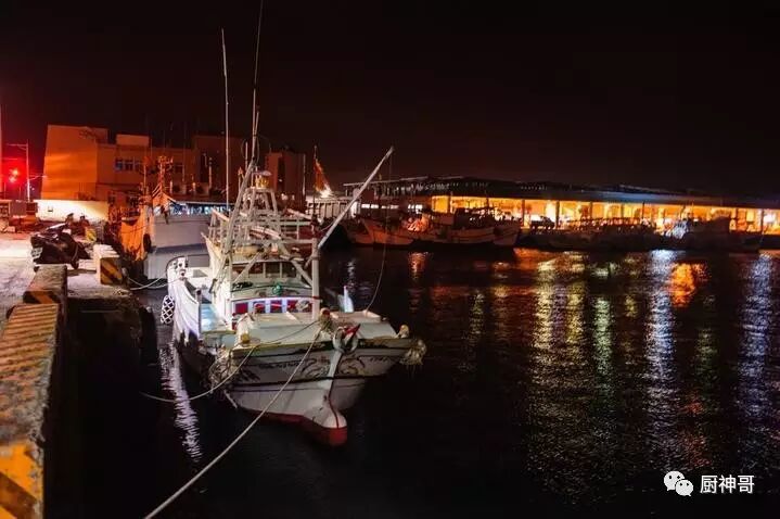 远处灯火通明之处就是热闹的鱼市。