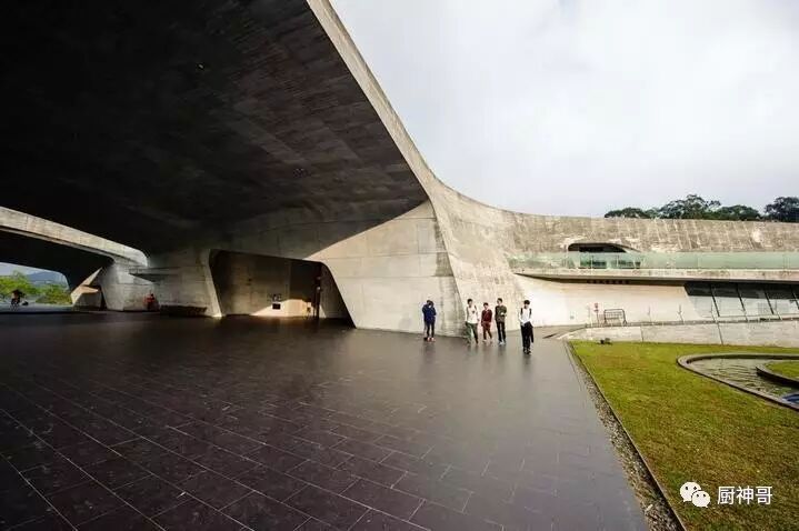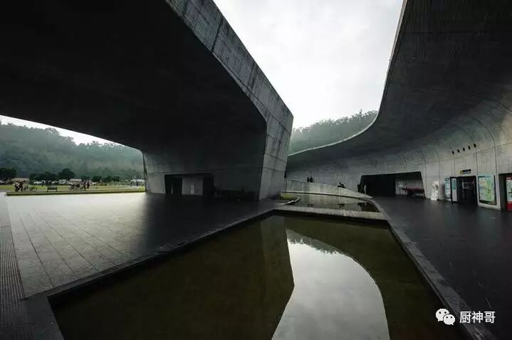 喜欢建筑的朋友一定不要错过这里,宏大而又极简风格的向山游客中心更像是一个巨大的装置艺术,矗立在日月潭边。这里是由著名的日本团纪彦建筑事务所(Norihiko dan and Associates)设计的,若从空中俯瞰,你会发现这座恢弘而又朴实无华的建筑如同两个巨大的V字交叠在一起,并且与倾斜的山坡融为一体。在靠近日月潭的一侧还有个巨大的水池,把水元素扩展到了建筑景观里,并与日月潭相互呼应。