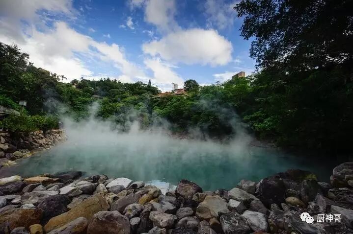 北投以温泉出名,而地热谷就是北投温泉的源头之一。还没看到地热谷的温泉水,就已见到蒸腾的雾气弥漫在整个山谷,不过这气味可并不好闻,有很浓的硫磺味。及至到了泉边,雾气越发浓郁,地热谷的温泉水很清澈透明,呈微微的蓝色,水中还汩汩冒着气泡,这里的温泉水温度很高,接近100摄氏度——这几乎就是开水嘛。