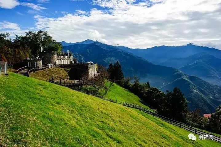 清晨6点,当我站在海拔1800米的清境佛罗伦斯度假山庄向远处眺望时,云海正蔓延过台湾中部连绵险峻的群峰,阳光给如丝如雾的云镀上了一层金色,也让翠绿的山峰染出出一块块的金黄——那些错落有致立于此处的欧式城堡般的别墅和建筑也在黎明的微光中显露了模样,让我生出又回到了瑞士少女峰下格林瓦尔德小镇的错觉。