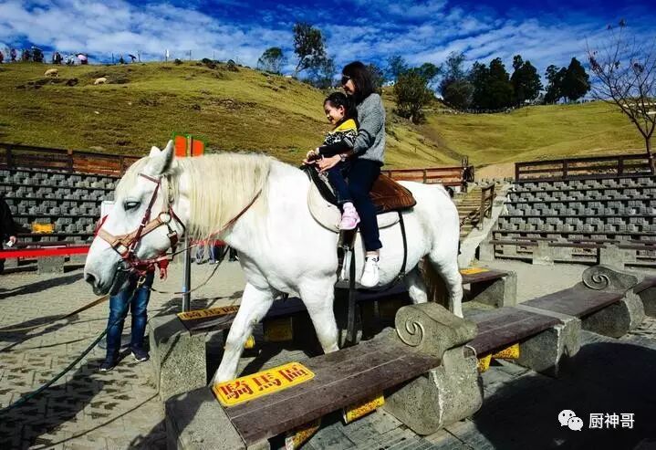青青草原的面积并不算大,但地势很高,视野非常之棒,周围的层峦叠嶂的山景都尽收眼底,令人心旷神怡。除了羊咩咩,青青草原这里还可以骑马哦。