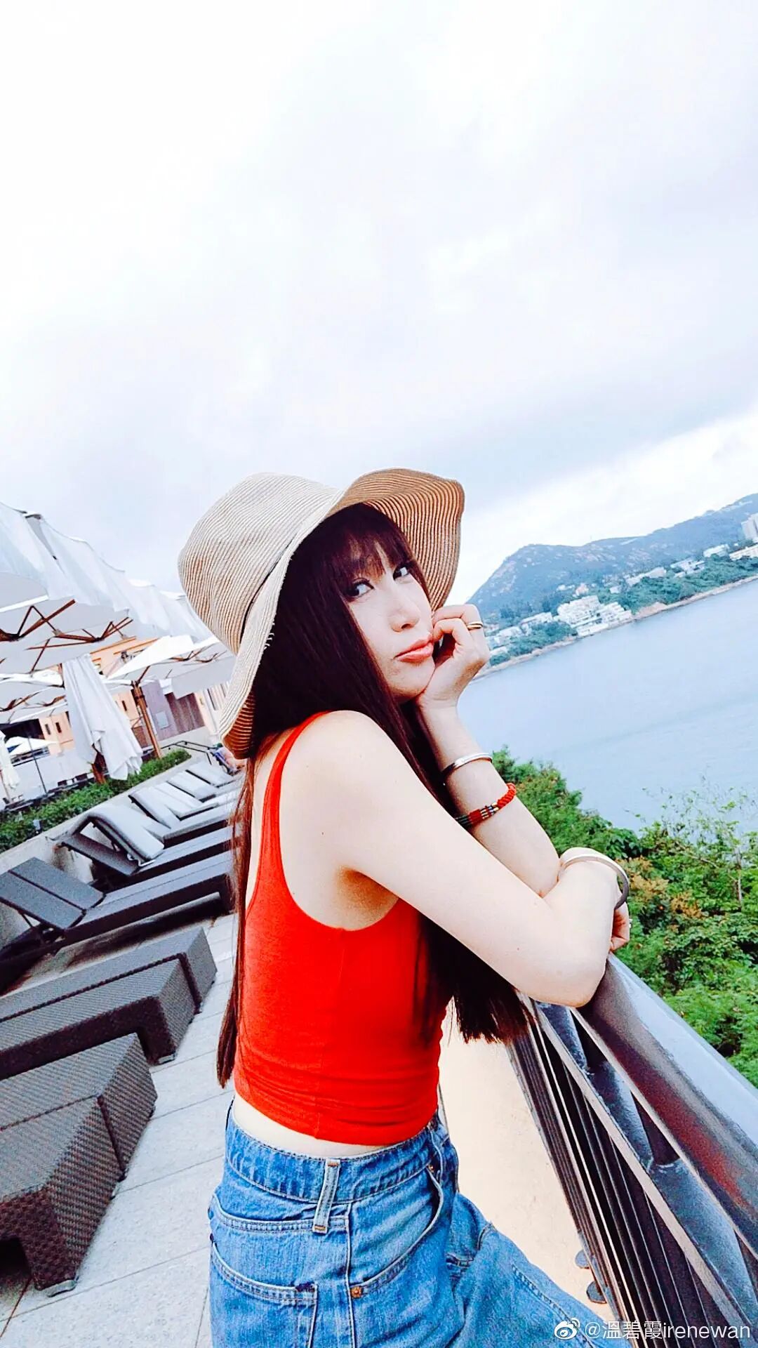 照片中的温碧霞依旧是想要通过穿一些鲜艳的颜色衣服来达到自己一个少女形象。照片中的红色背心搭配蓝色牛仔裤确实是很好看,但是穿在她身上感觉不太适合,尤其是她自己一个人的脸已经特别显老了。所以这样看起来感觉有点突然。